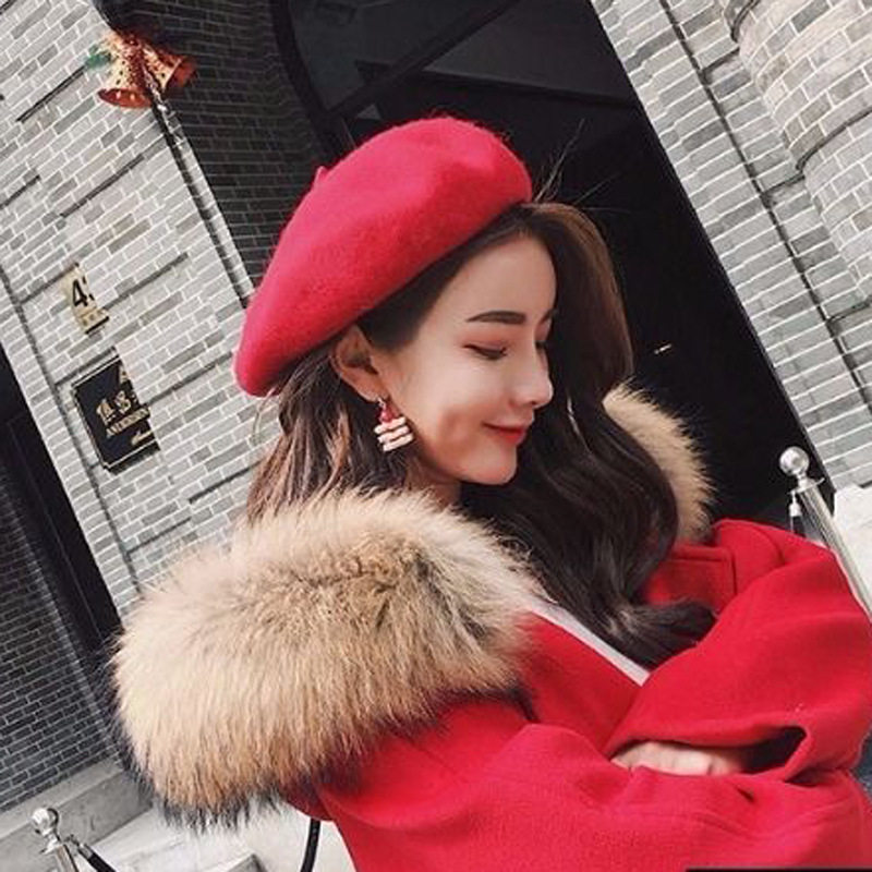 春秋冬季新款贝雷帽韩版蘑菇女士帽子透气南瓜帽羊毛呢画家帽