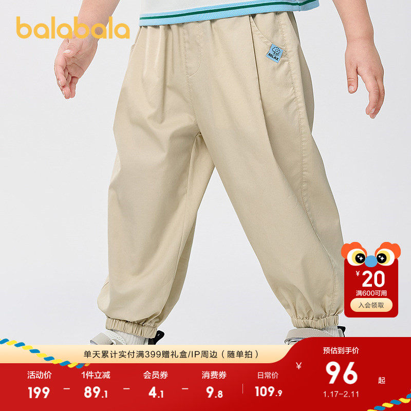 巴拉巴拉童装男童长裤宽松束脚防蚊裤2025夏新款速干运动透气跑步