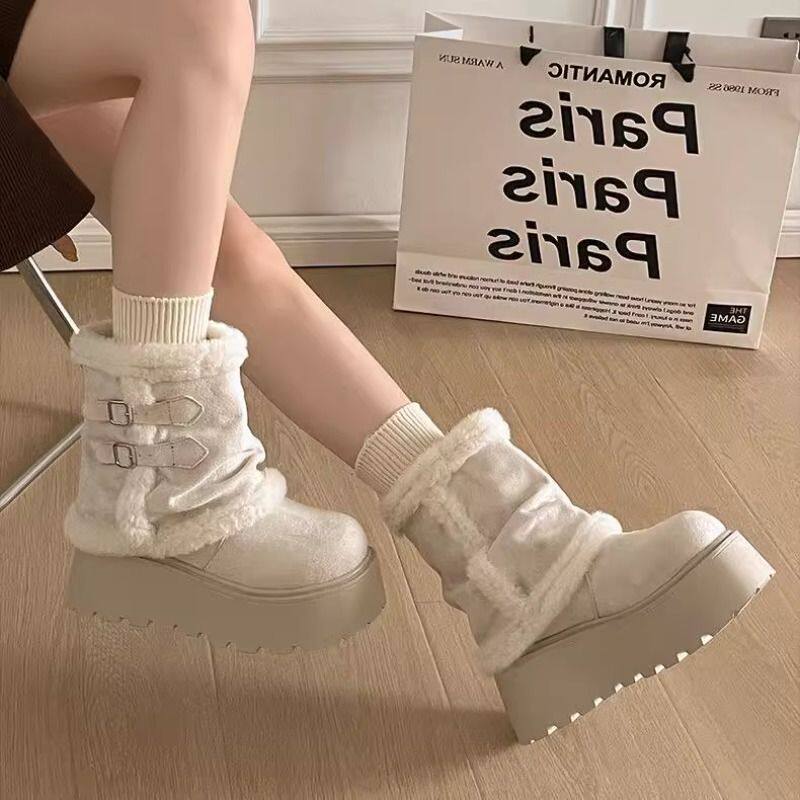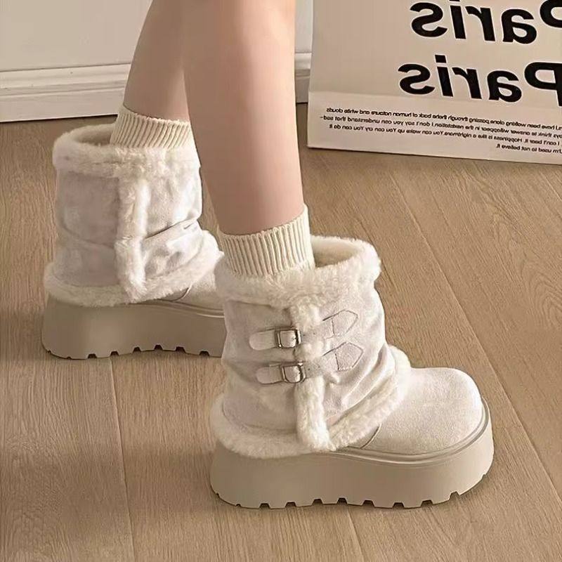 的厚底增高雪地靴女加绒保暖短筒靴2025秋冬新款棉靴子白色防水