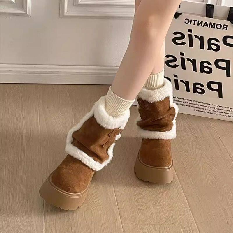 内增高厚底棕色长筒雪地靴女2025冬新款两穿加绒加厚中筒东北棉鞋