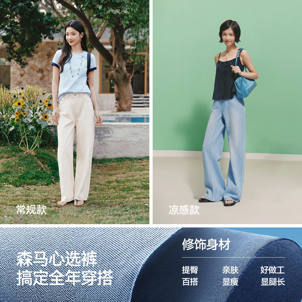 森柔森马牛仔裤女夏季凉感抑菌宽松毛边汉麻阔腿喇叭裤26新款长裤