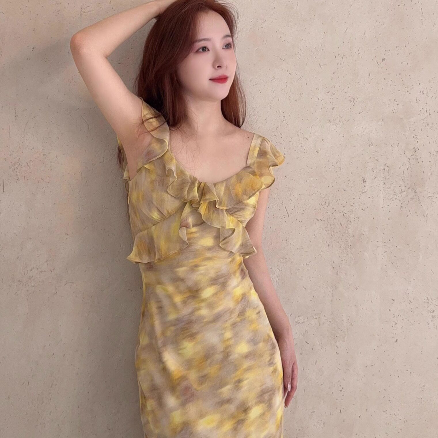 【大恩强推|杏云纱】法式复古碎花连衣裙中长款气质度假荷叶边裙