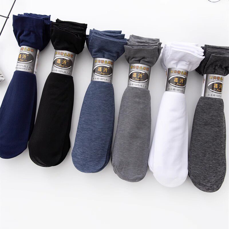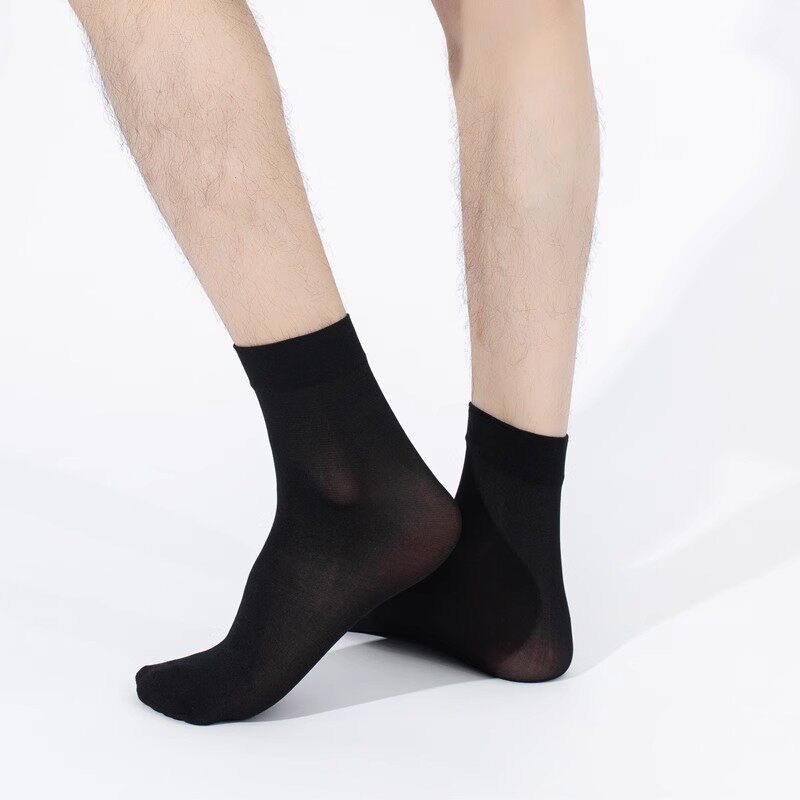 20双袜子男士丝袜男长袜夏季薄款冰丝中筒袜夏天黑色透气丝光白色
