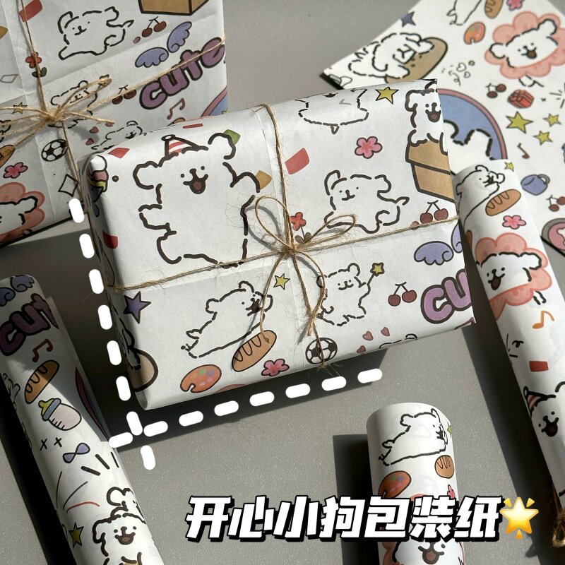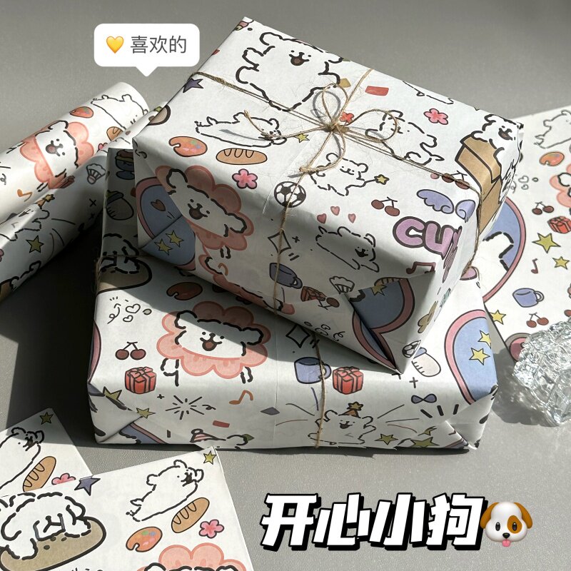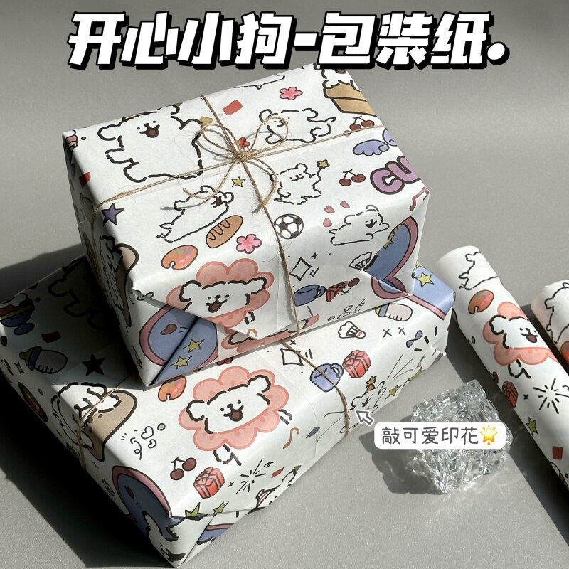 ins风高颜值开心小狗包装纸大尺寸DIY卡通礼品礼物鲜花礼物打包纸