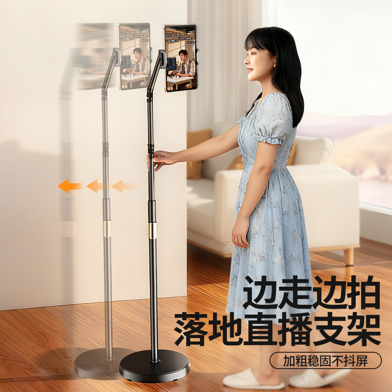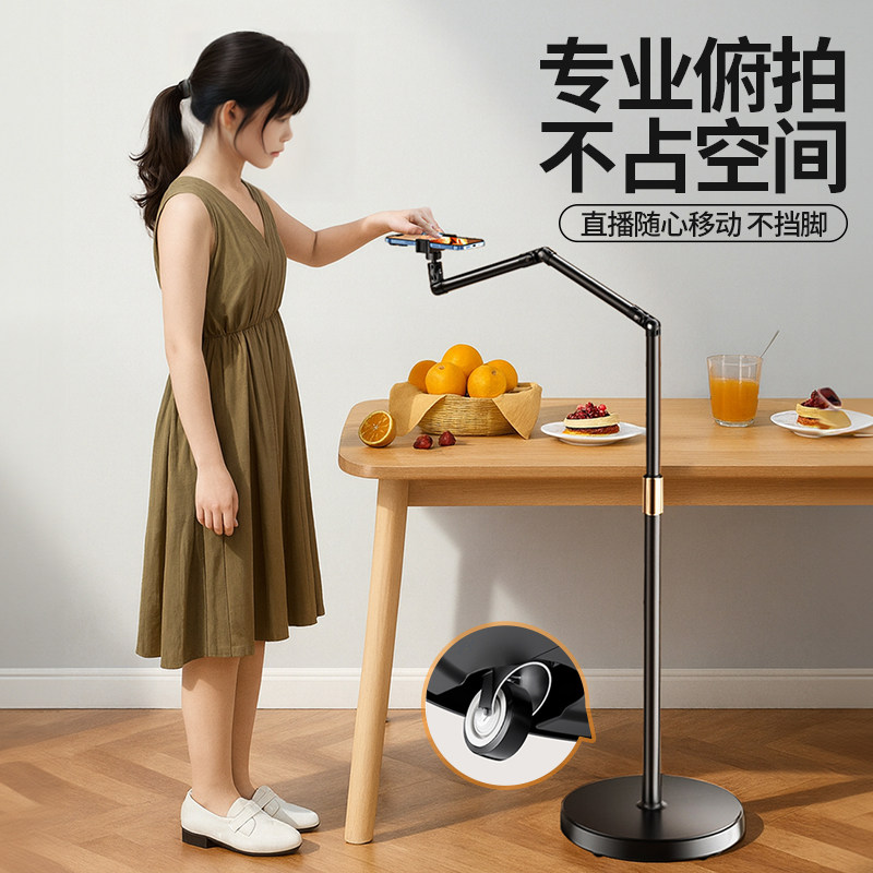 可移动万向滑轮手机支架落地式直播专用拍摄拍照拍视频多功能手机架平板电脑通用固定夹悬臂懒人追剧支撑架