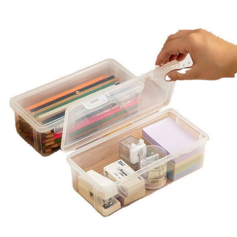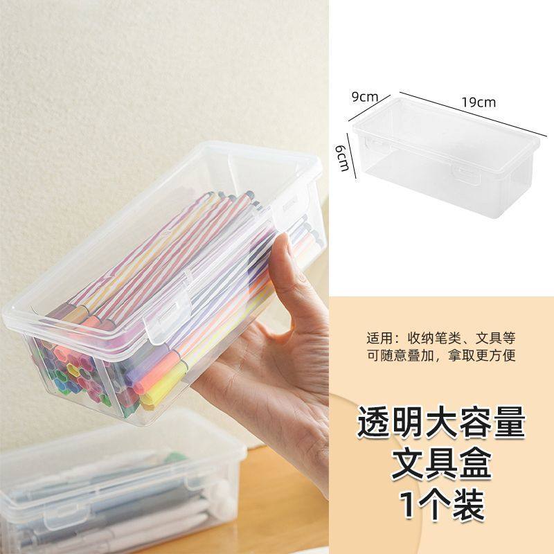 铅笔收纳盒大容量透明文具盒收纳笔筒装彩铅儿童蜡笔绘桌面收纳盒