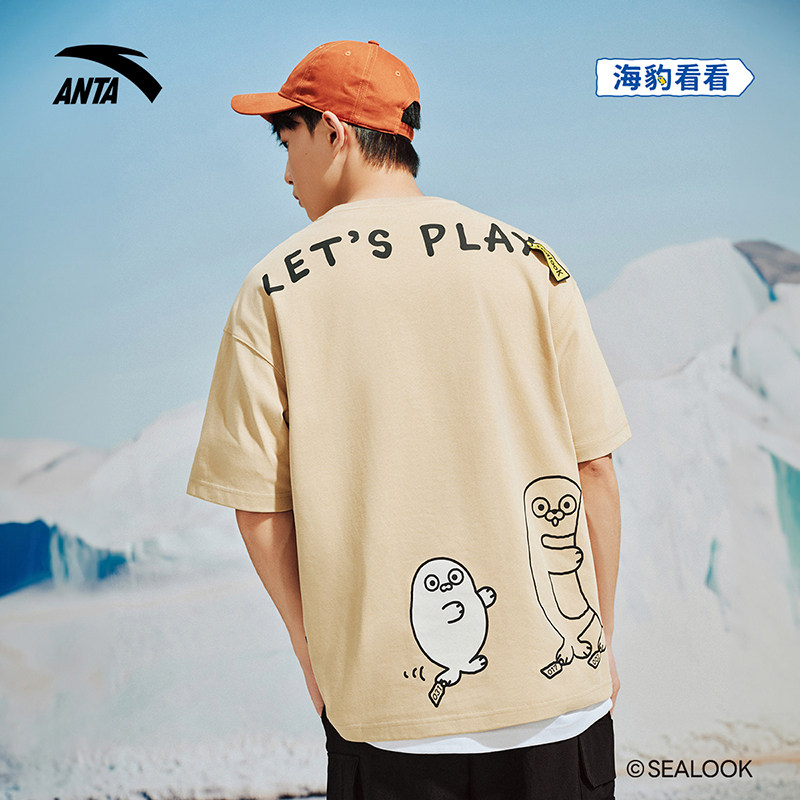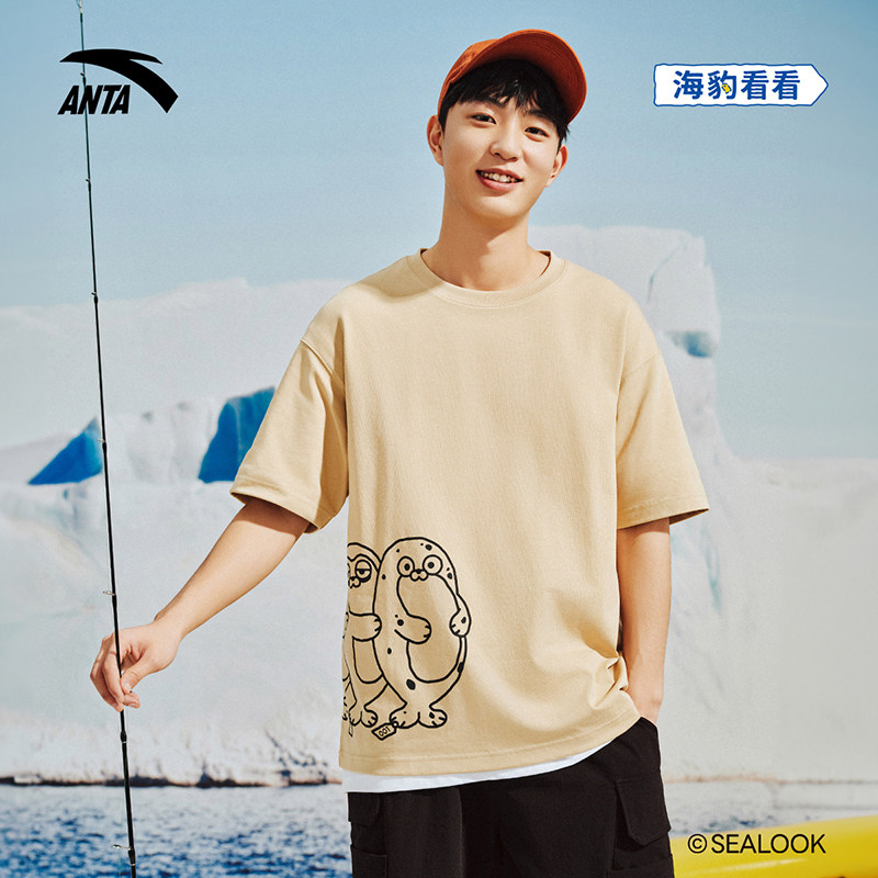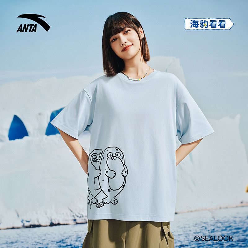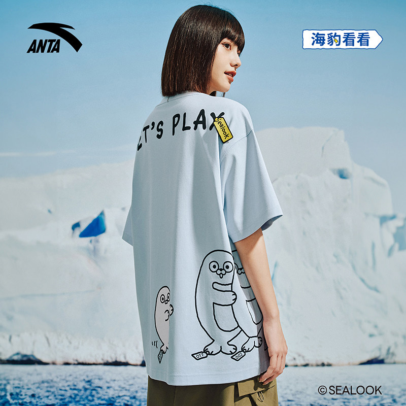 安踏×海豹看看联名丨情侣休闲短袖男秋季宽松透气凉感t恤女上衣