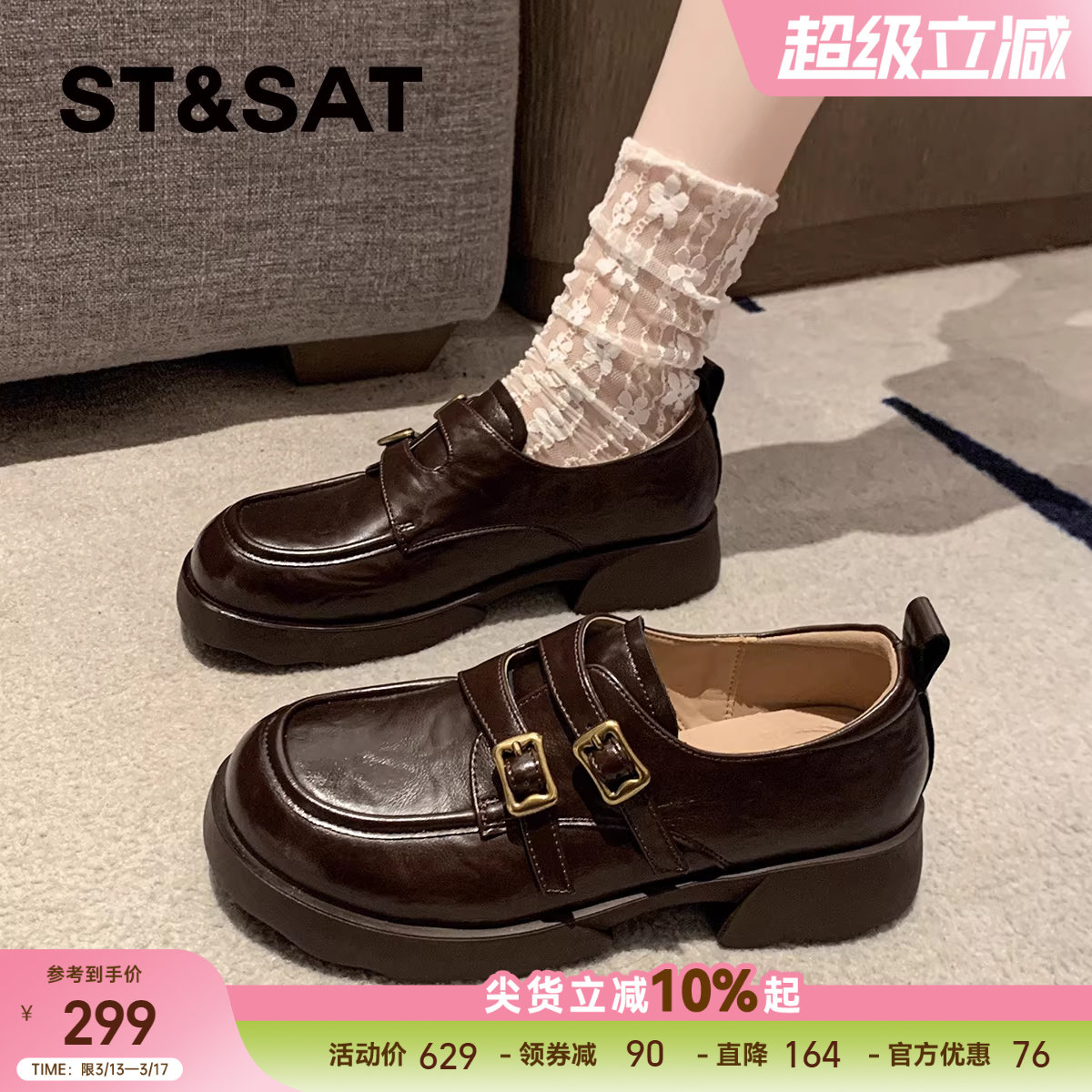 星期六厚底乐福鞋女鞋棕色法式复古小皮鞋子女新款英伦风单鞋女款