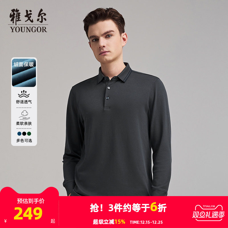 【莫代尔】雅戈尔秋冬男士长袖T恤商务休闲翻领宽松大码polo衫男
