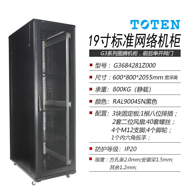图腾42U机柜G36842网孔门2米高800深600宽标准19英寸网络服务器监控弱电机柜现货TOTEN原装600*800*2055mm