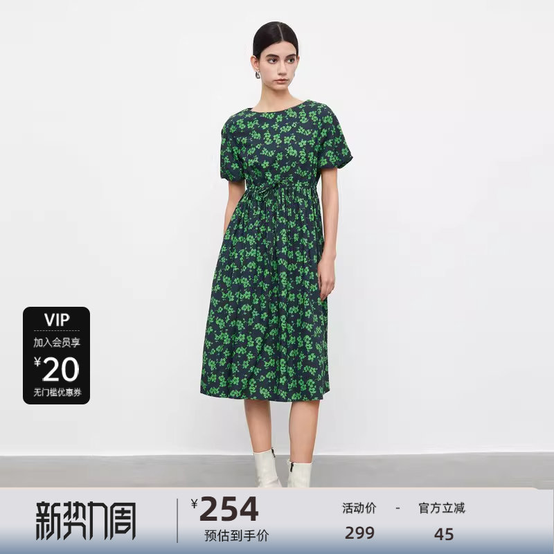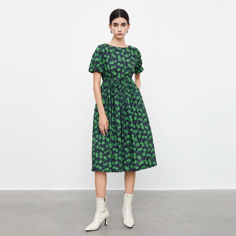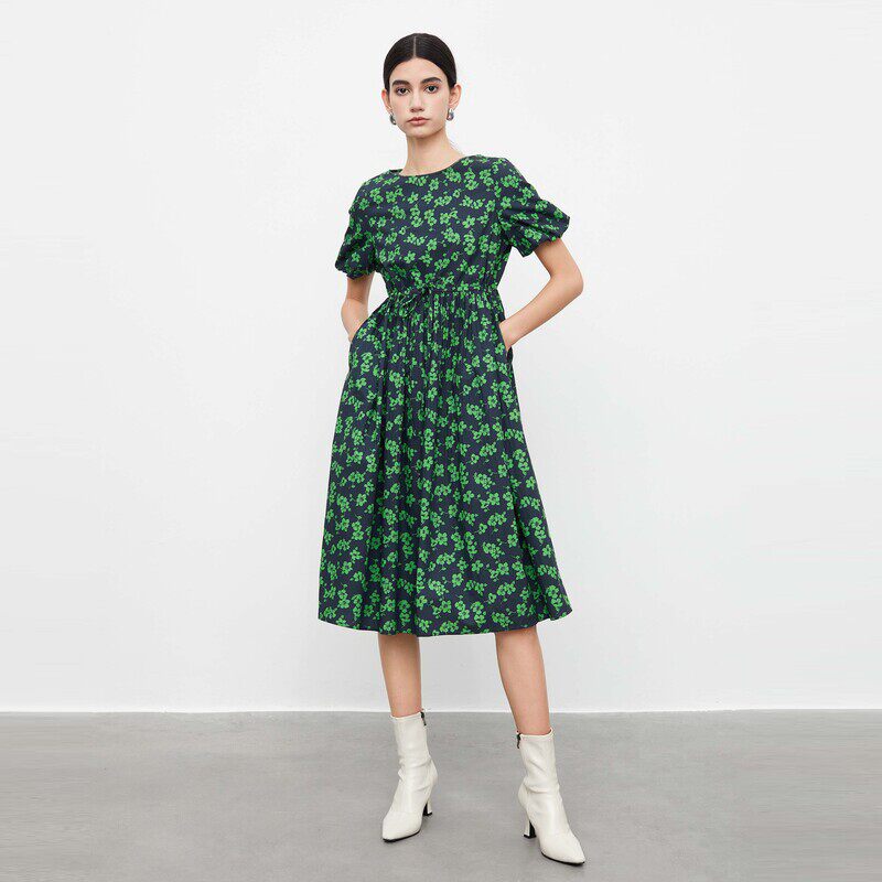 sdeer圣迪奥碎花收腰泡泡袖连衣裙S232Z12UM