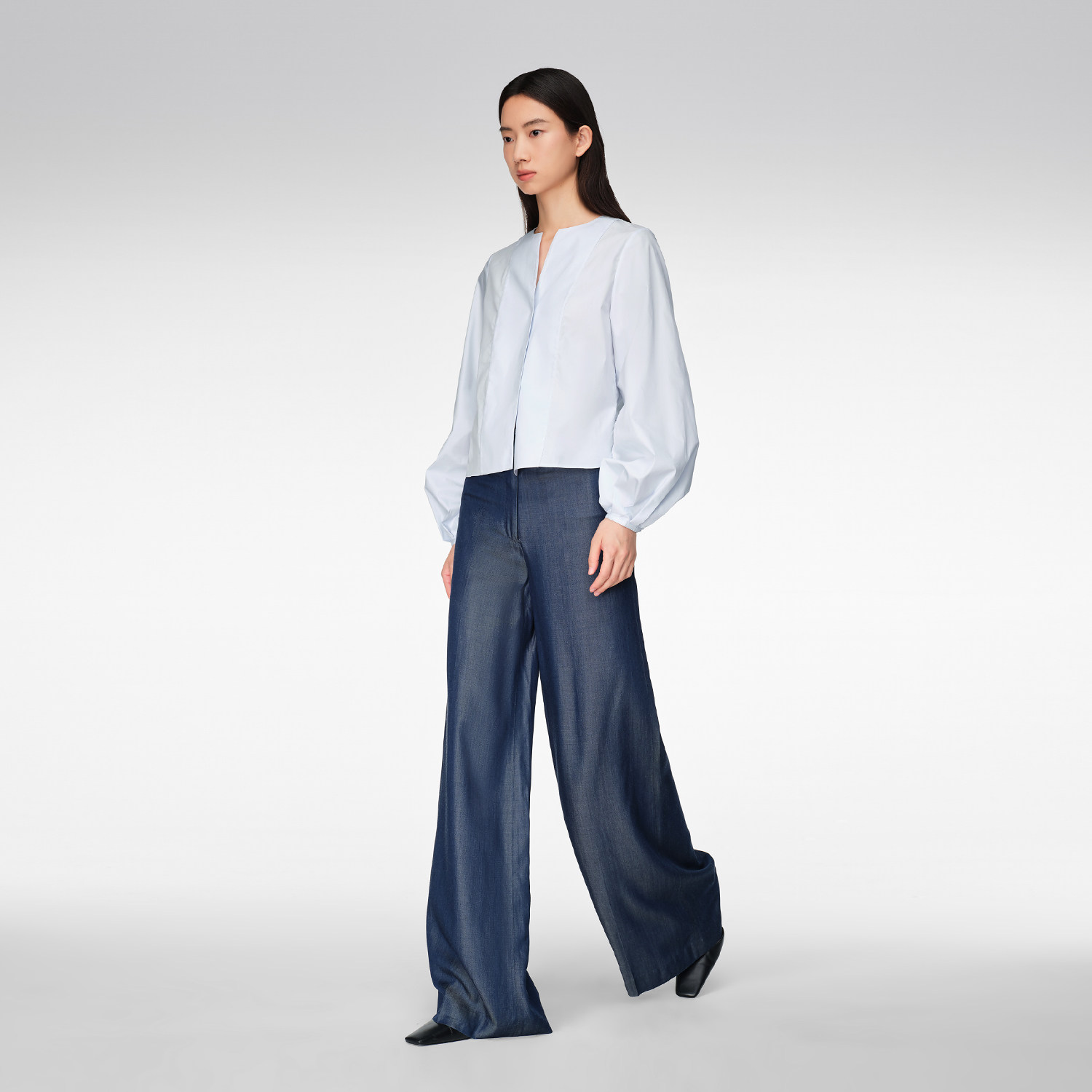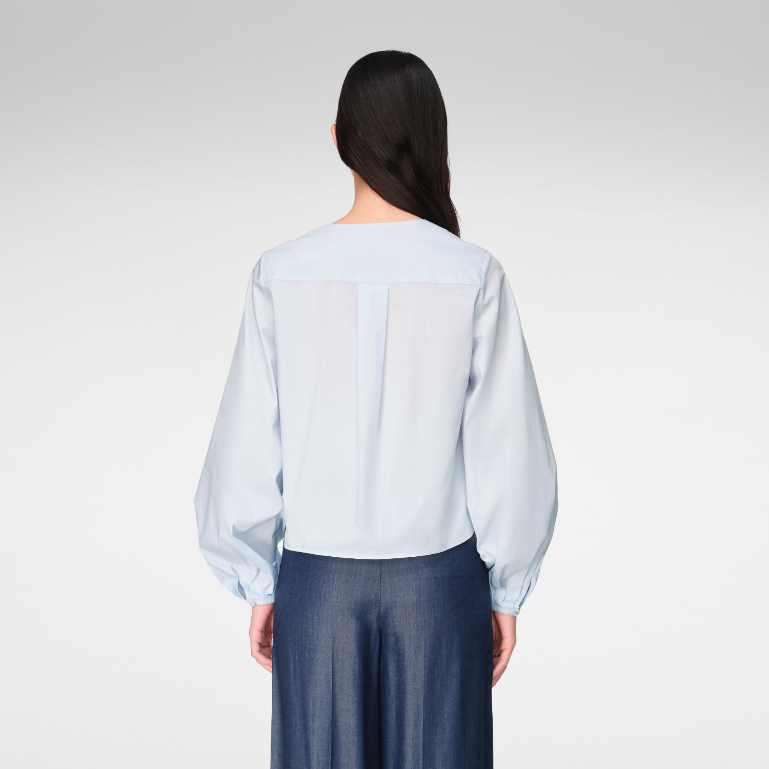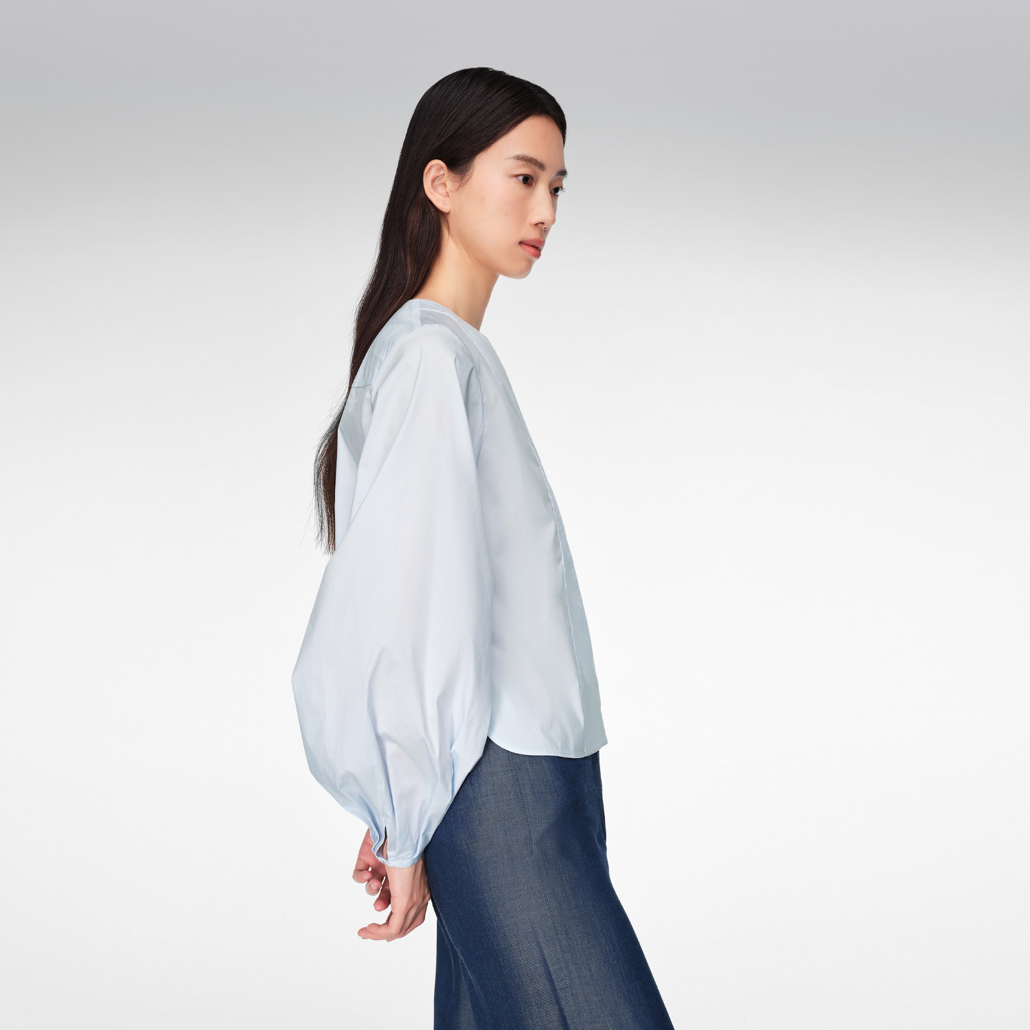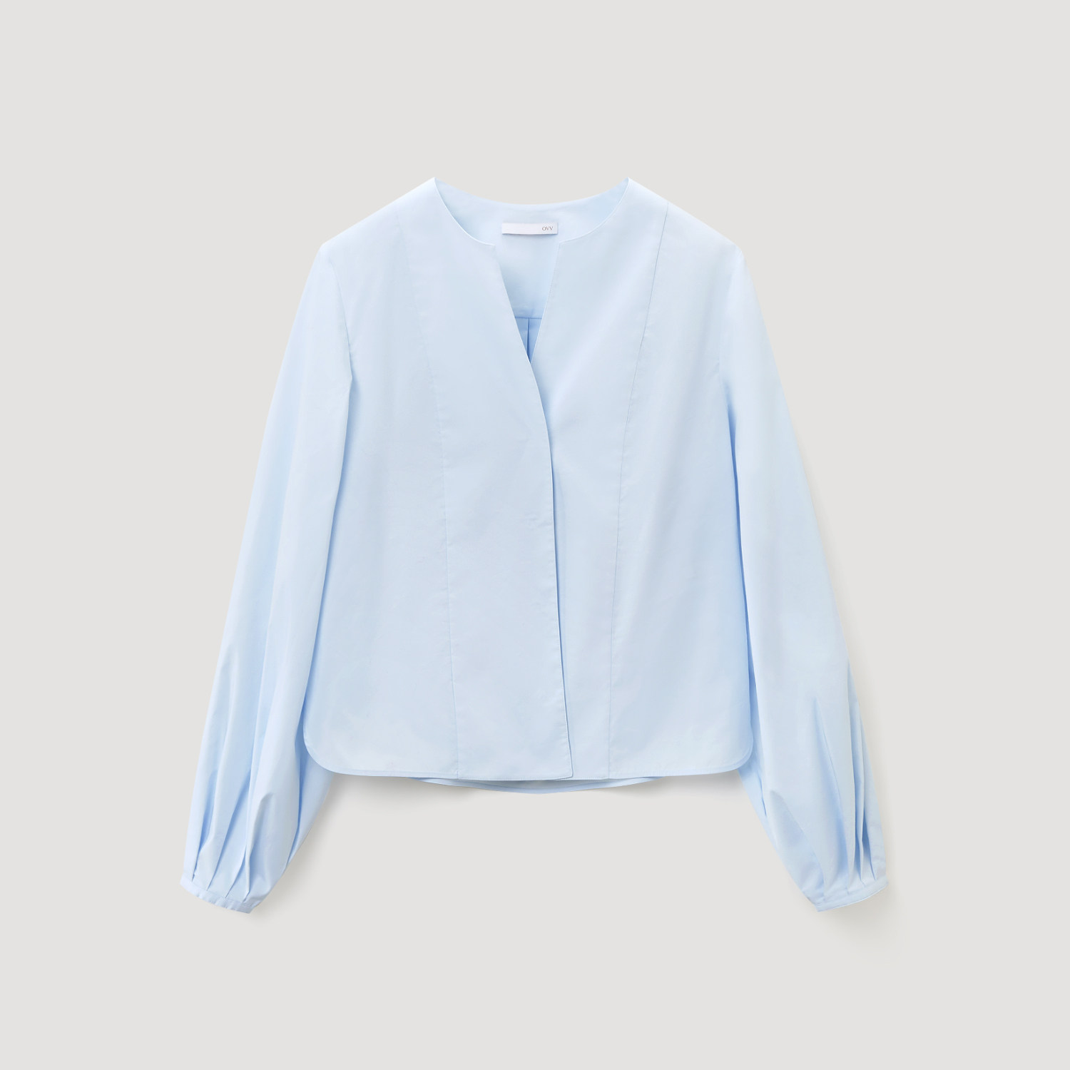 OVV春夏热卖女装空气洗匹马棉双层门襟灯笼袖长袖衬衫