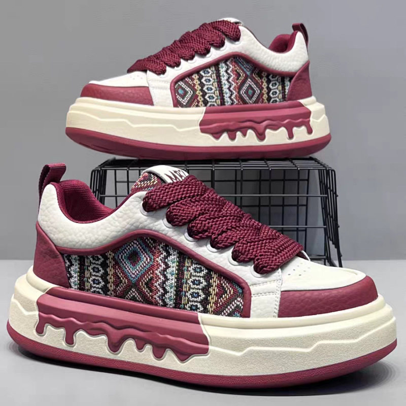 顽刻官方豹纹印花春季校园风W系列帆布拼接低帮男女国潮滑板鞋