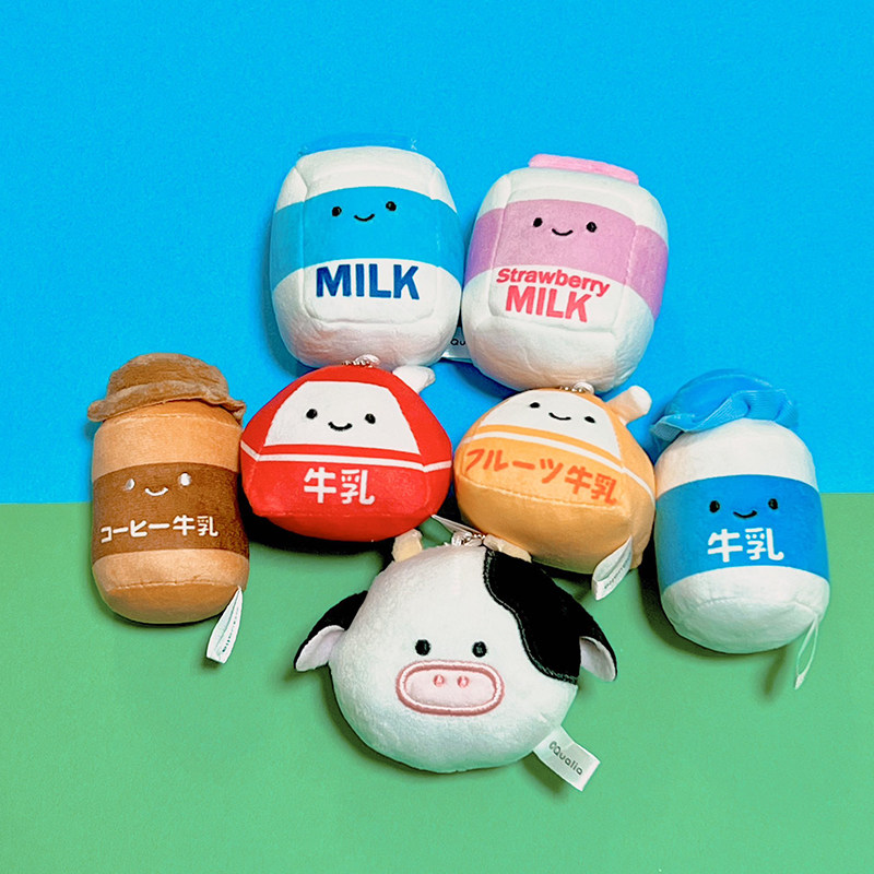 日本正版QUALIA 第1弹 牛奶毛绒系列扭蛋 牛奶盒瓶微笑豆豆眼挂件