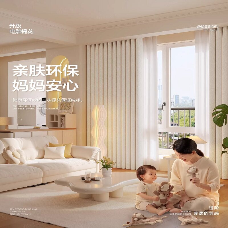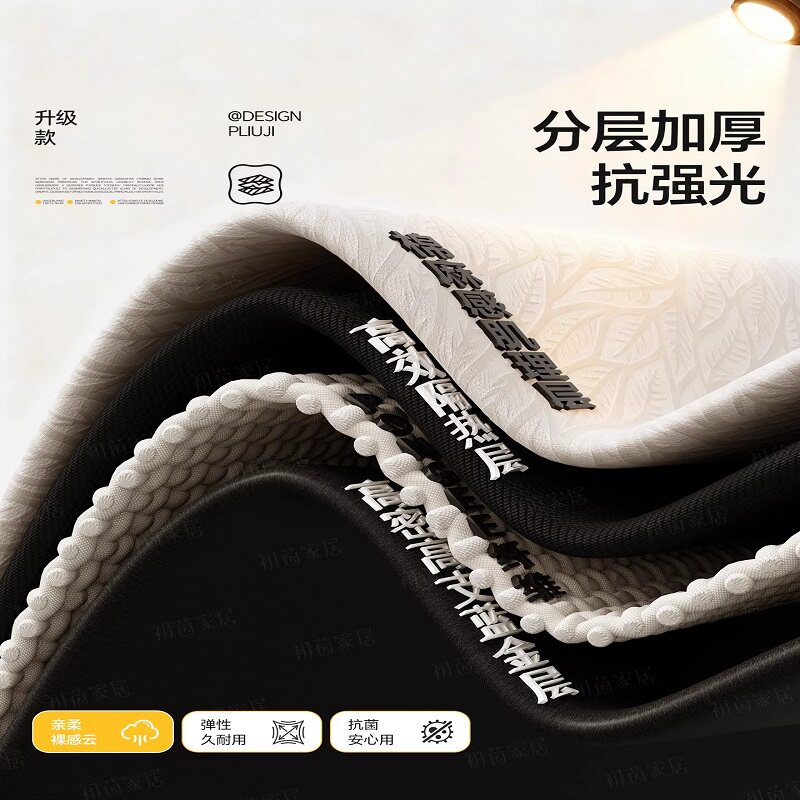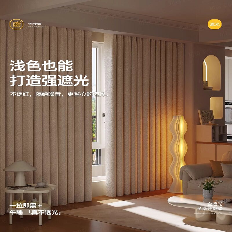 全遮光窗帘隔音加厚2026新款卧室挂钩式防晒隔热遮阳布100不透光