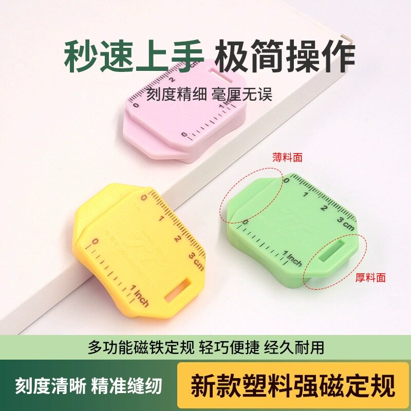 新款平车塑料磁铁定规带刻度尺超强磁力挡边缝纫机多功能定位器