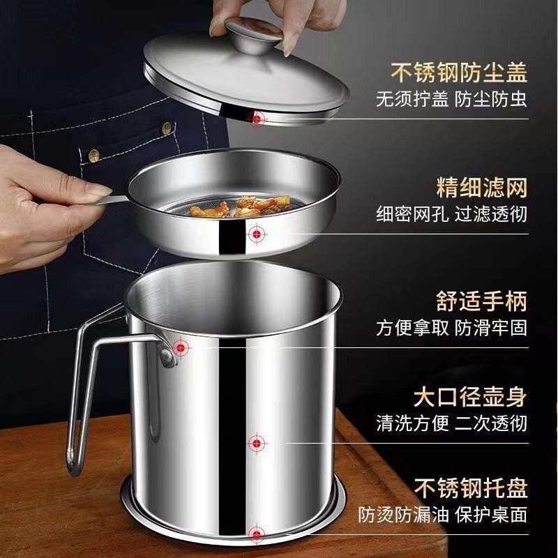 304油壶不锈钢过滤网家用装油瓶厨房储滤油猪油渣储油罐食品级