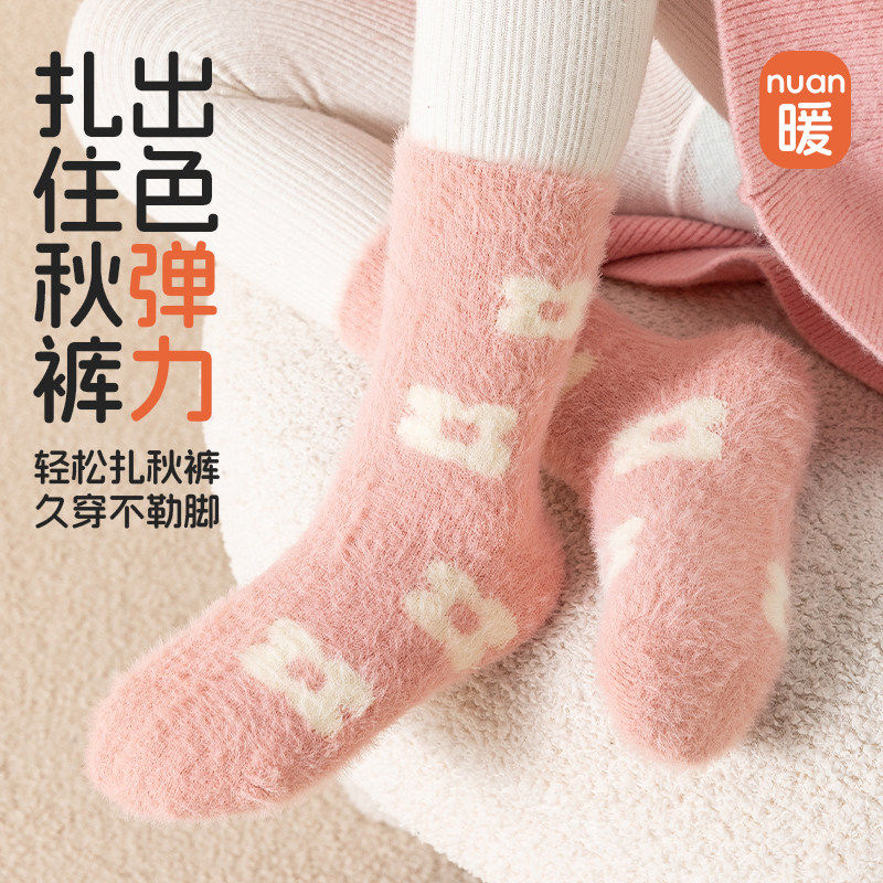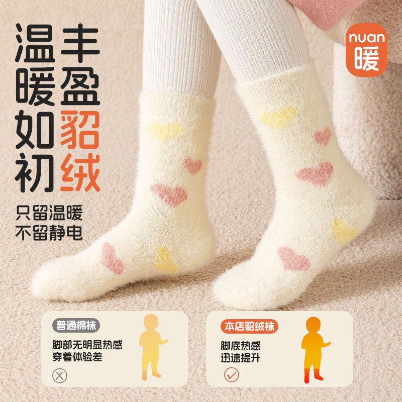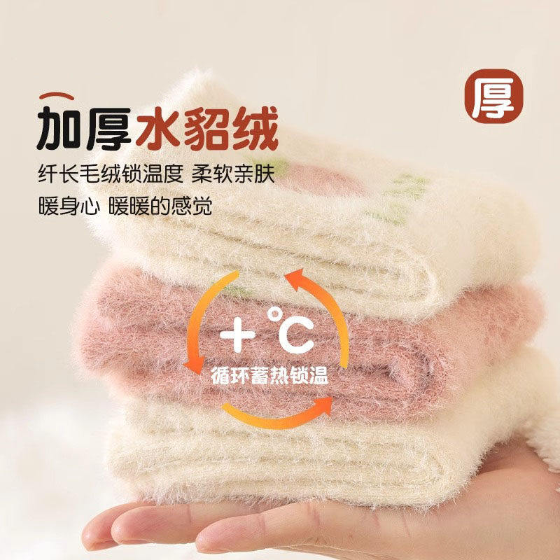 女童袜子秋冬季加绒加厚儿童水貂绒保暖睡觉珊瑚绒宝宝居家中筒袜