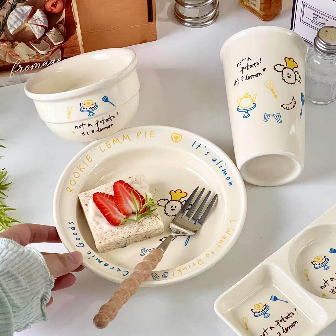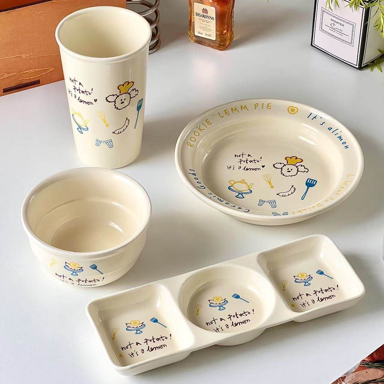 韩式ins小狗奶油陶瓷餐具沙拉早餐盘点心碟米饭碗盘早餐马克杯