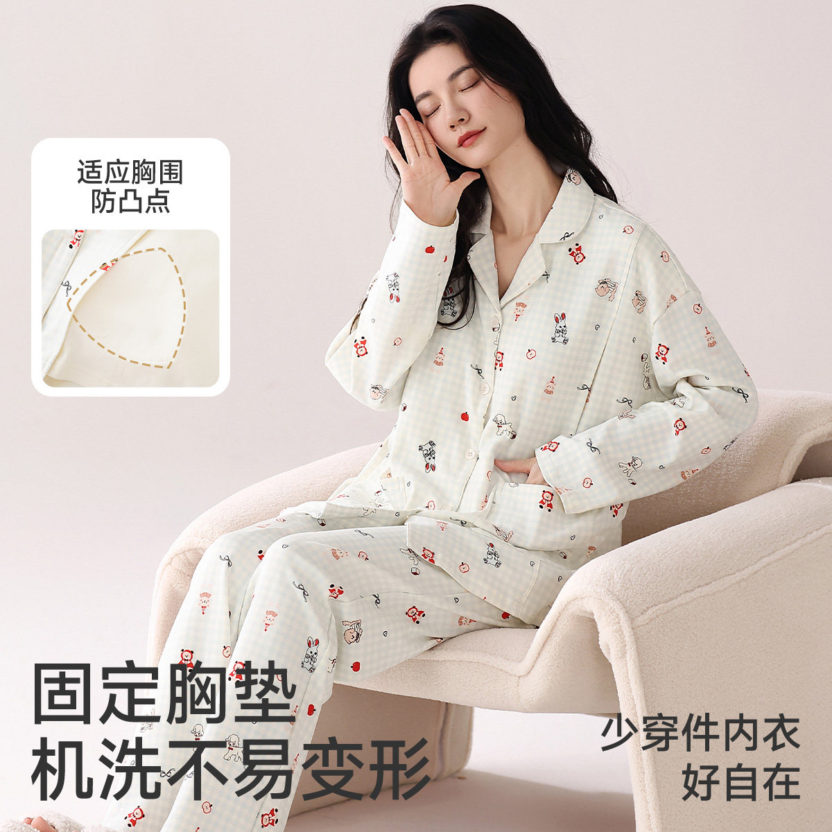 春秋季云感棉带胸垫月子服产后产妇秋冬12月份孕妇哺乳睡衣家居服