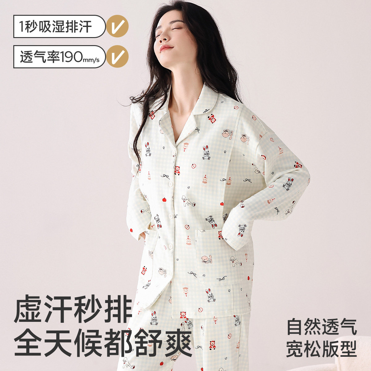 空气棉月子服秋冬季纯棉产后12月份全棉吸汗喂奶产妇哺乳孕妇睡衣