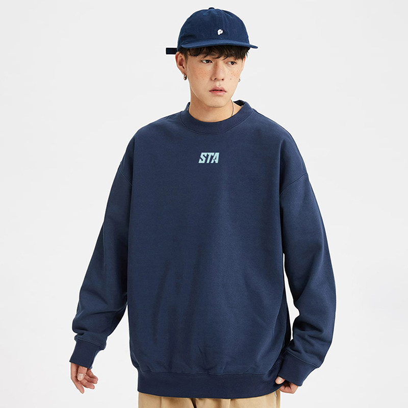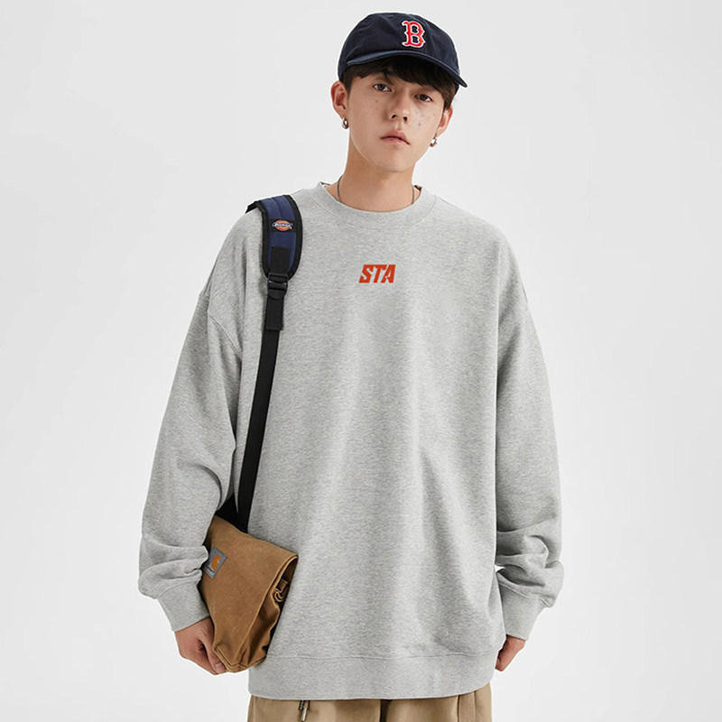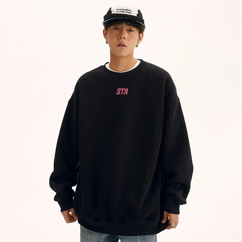 STA春秋冬季胸前字母印花圆领卫衣男休闲情侣秋冬基础款长袖套头