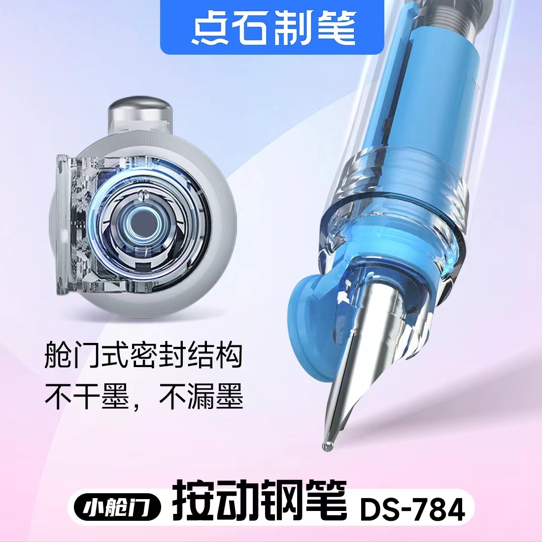 点石小舱门按动钢笔DS-784按压式时空舱钢笔可替换1784墨囊可擦蓝墨蓝黑色小学生专用三四年级高颜值文具钢笔