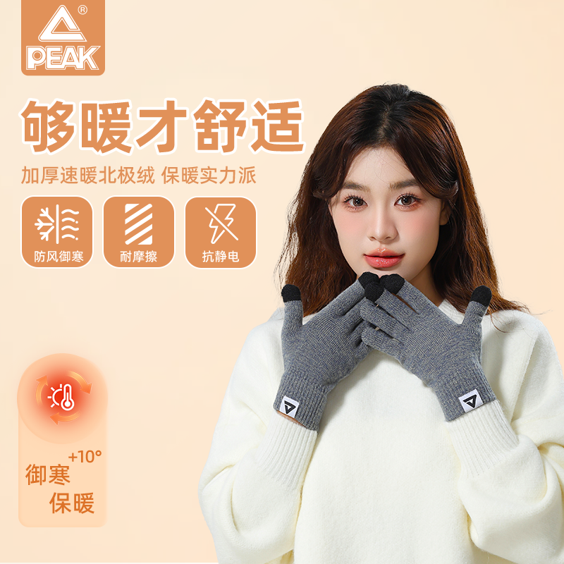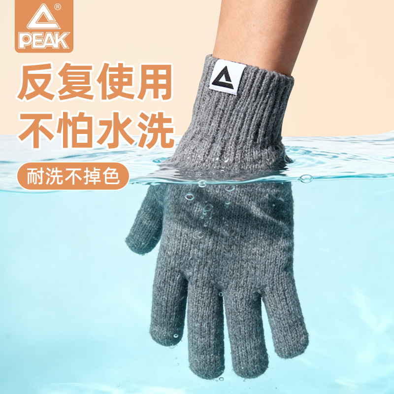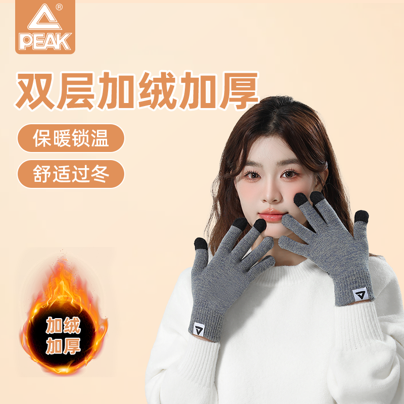 匹克保暖针织毛线手套防滑男女士秋冬季加绒户外骑行加厚触屏全指