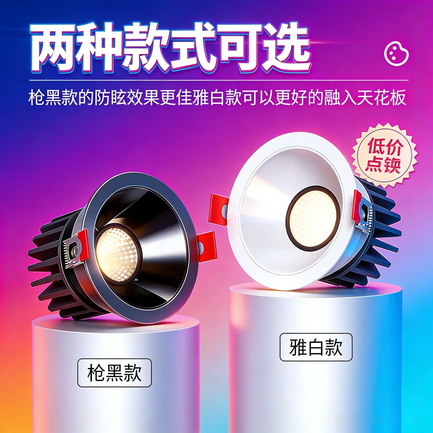 射灯LED天花灯小山丘嵌入式超亮家用COB筒灯7W可调商用聚光孔灯
