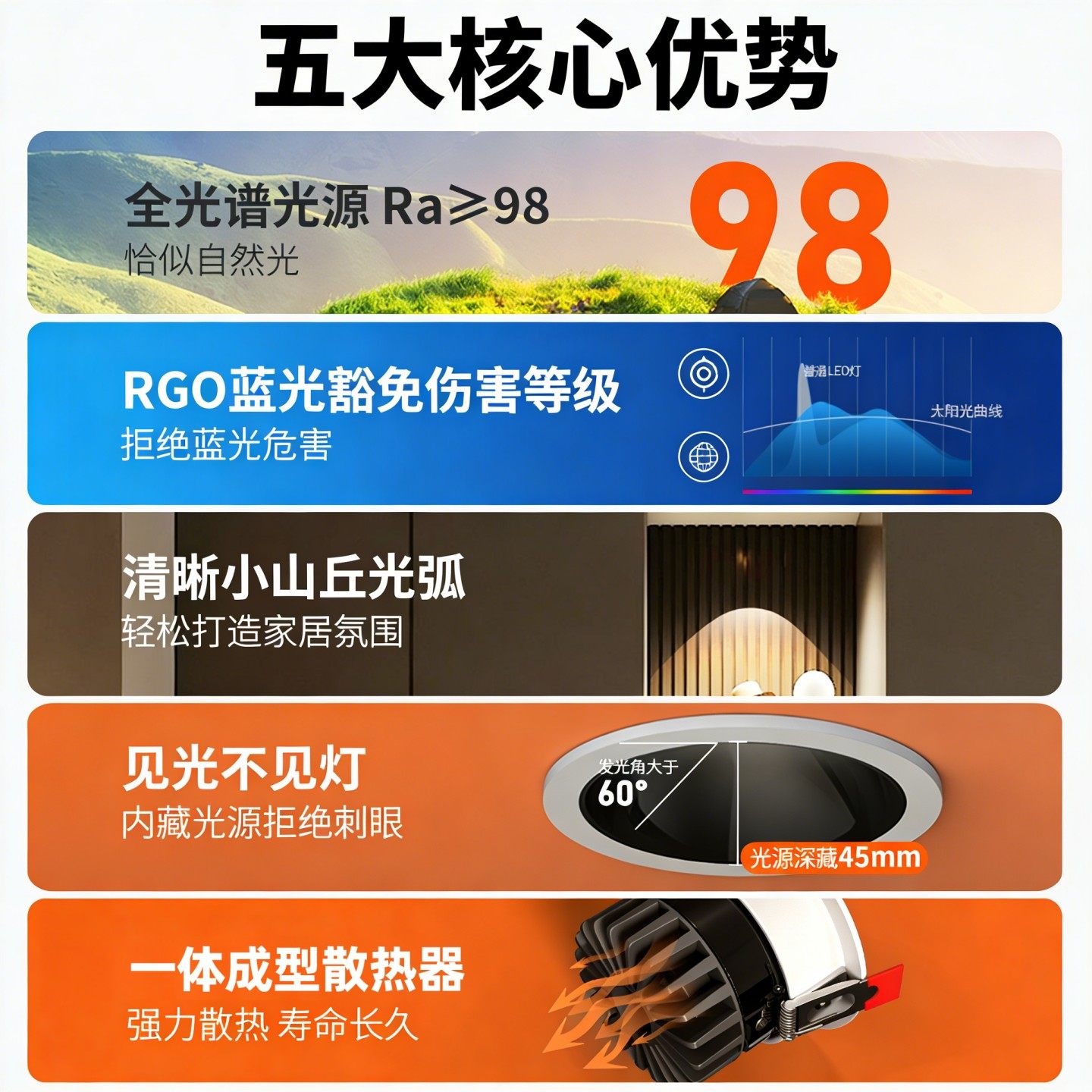 隐形弧面无边框护眼射灯小山丘嵌入式客厅筒射灯无主灯防眩洗墙灯