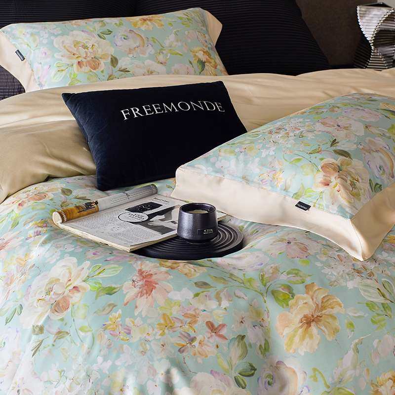奢?香龄春夏田园花卉印花被套四件套120S兰精天丝凉感莱赛尔床品