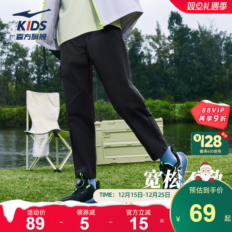 鸿星尔克童装男童运动裤子秋季中大童儿童防泼水速干直筒休闲长裤