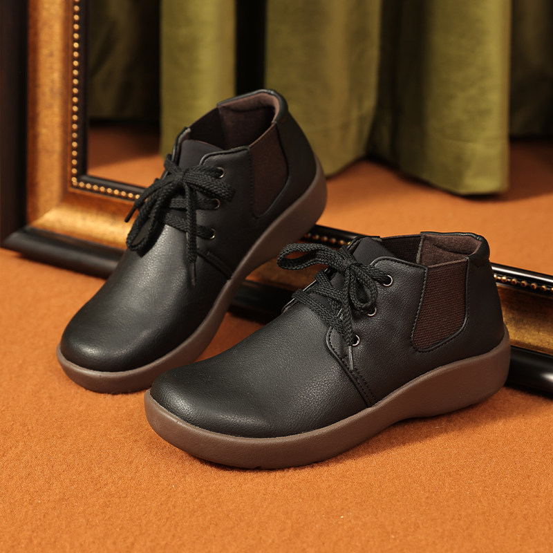 牛筋底妈妈鞋真皮防滑软底休闲中老年单鞋舒适蝴蝶结中年春秋皮鞋
