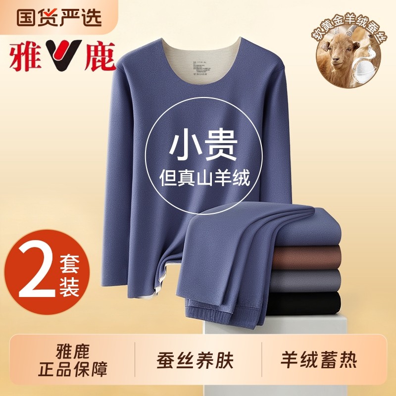 雅鹿秋衣秋裤套装男款无痕羊绒蚕丝保暖内衣男士冬季保温上衣红色