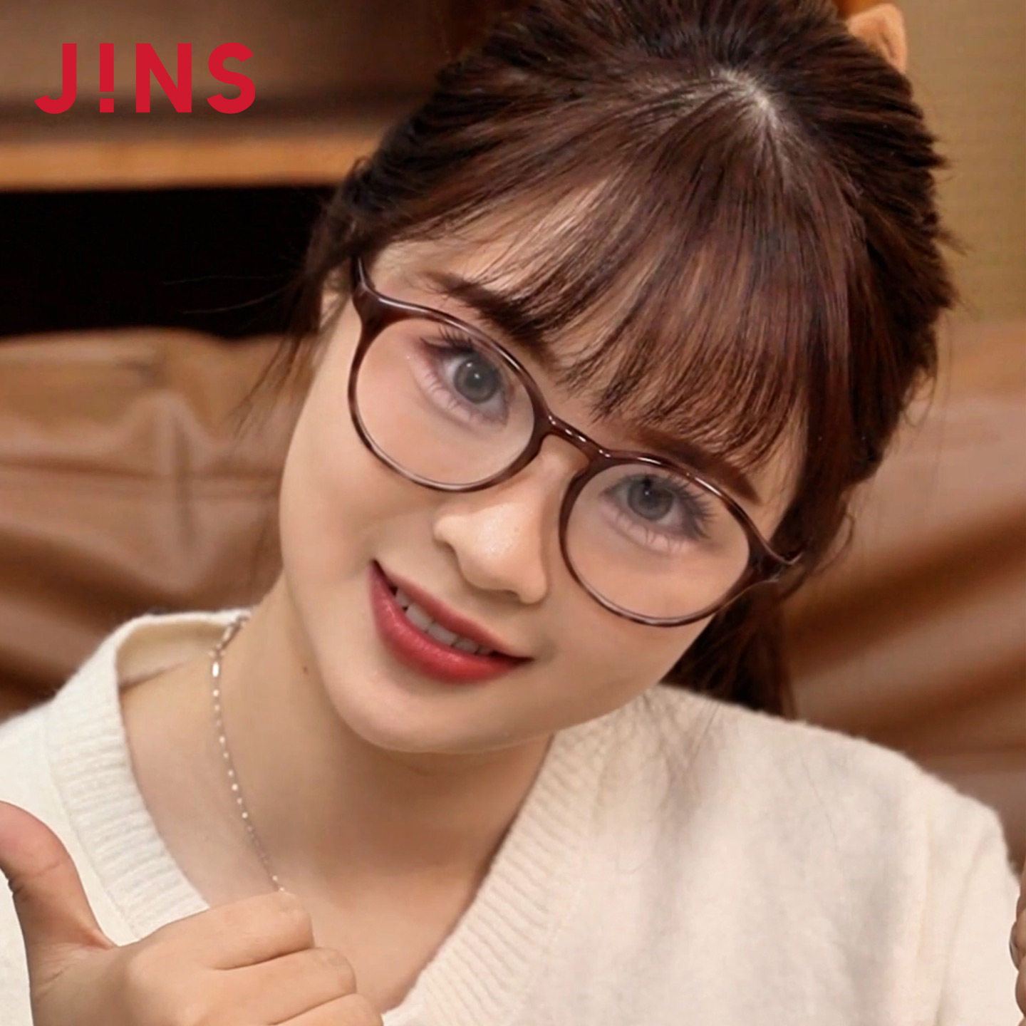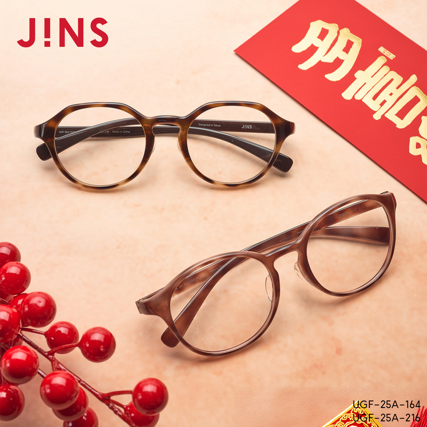 JINS睛姿HOME近视眼镜大圆框轻量休闲可加配防蓝光镜片UGF25A216