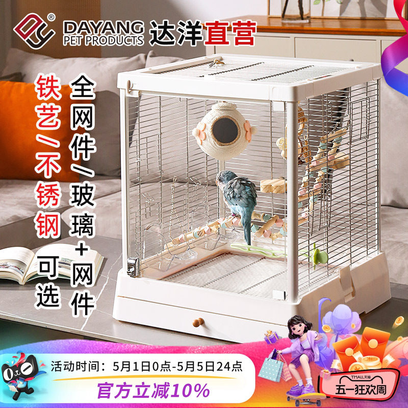 达洋鹦鹉鸟笼子B5001SS全景玻璃304不锈钢家养鸟别墅和尚玄凤虎皮