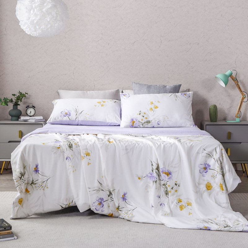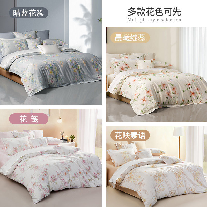 雅兰花卉床上四件套全棉纯棉床笠简约床单被套三件套单人床品套件