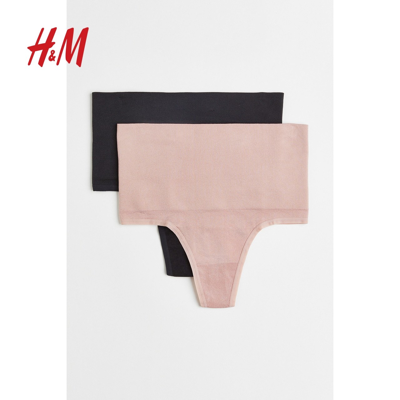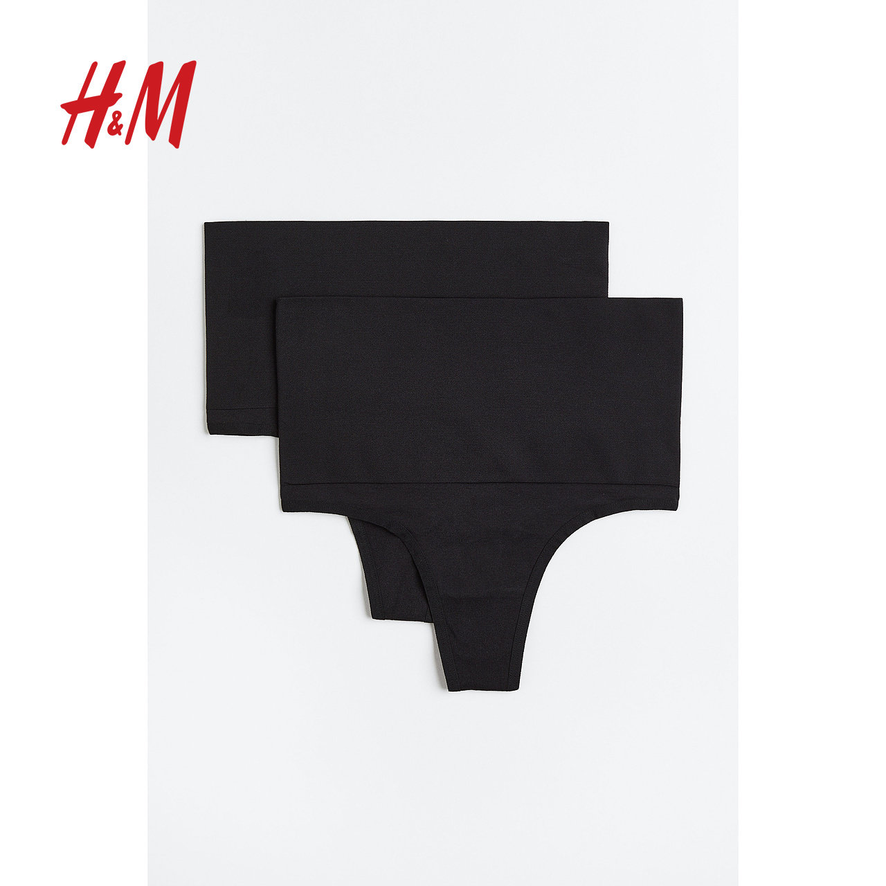HM女士内裤冬季亲肤舒适高腰塑身丁字裤2件装0950093
