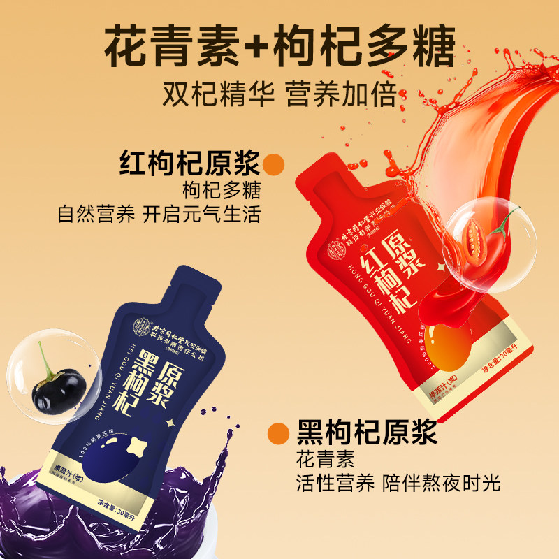 骄慕红黑枸杞原浆30ml*7袋/盒枸杞沙棘姜黄蓝莓不老莓无添加原浆