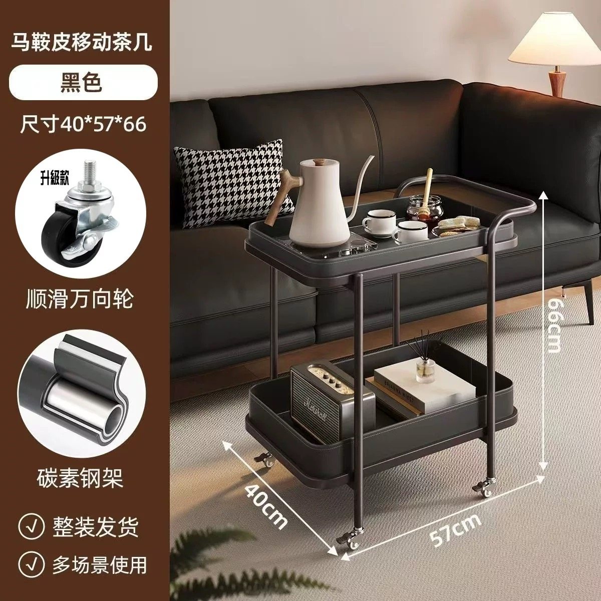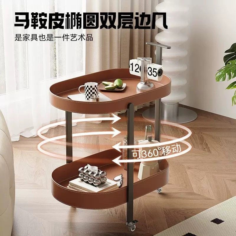 轻奢马鞍皮沙发边几可移动带轮小推车置物架客厅边桌边柜小茶几