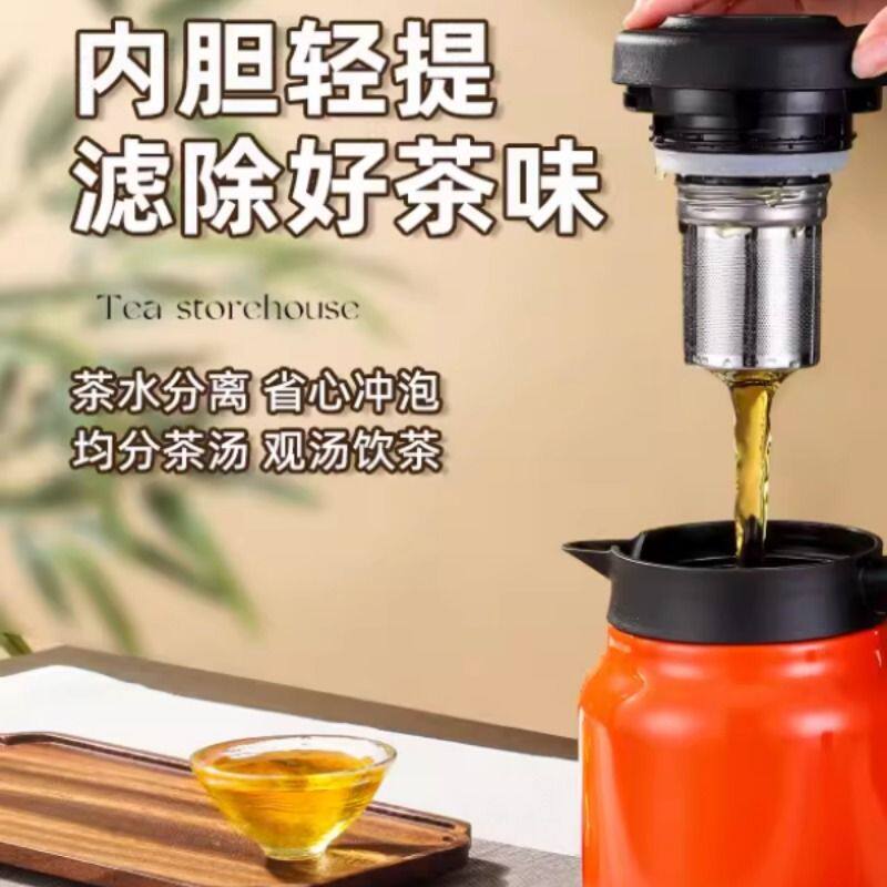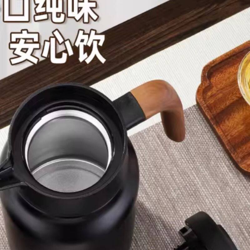 316不锈钢焖茶壶木手柄保温壶茶水分离泡茶壶大容量热水壶长效