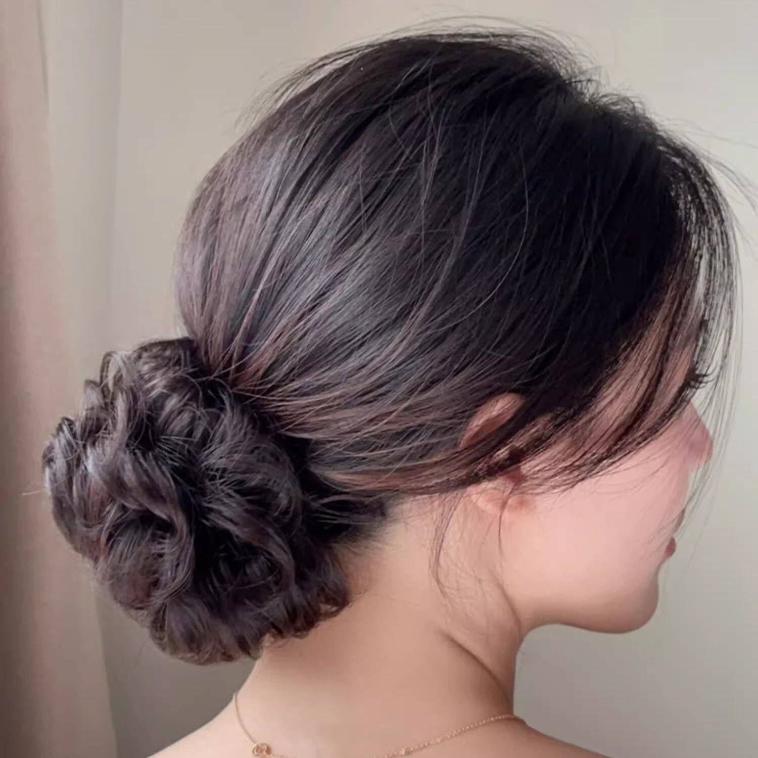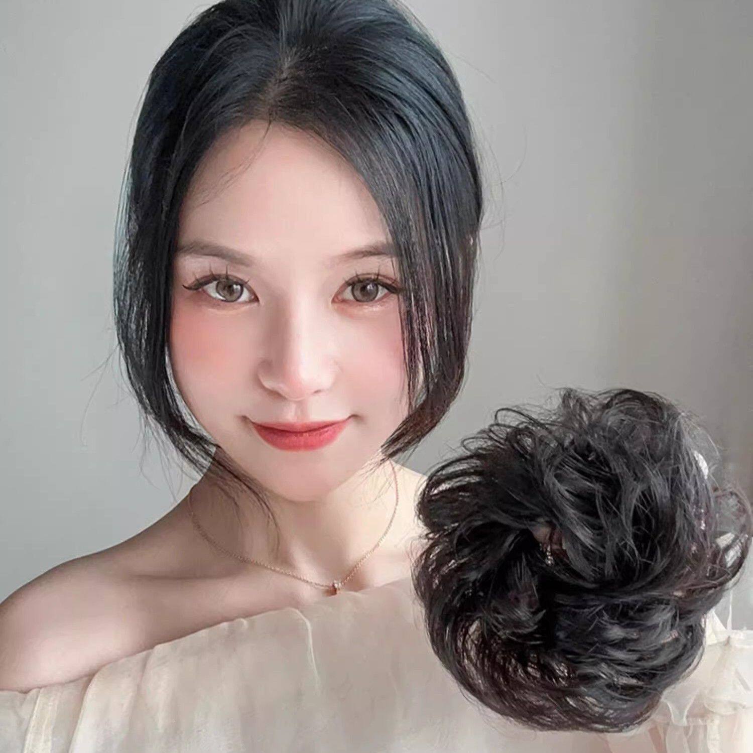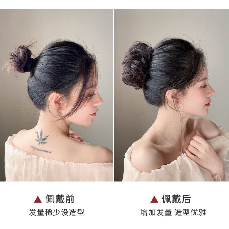 低扎丸子头假发鸡毛头抓夹盘发发包慵懒感造型头饰自然蓬松后脑勺