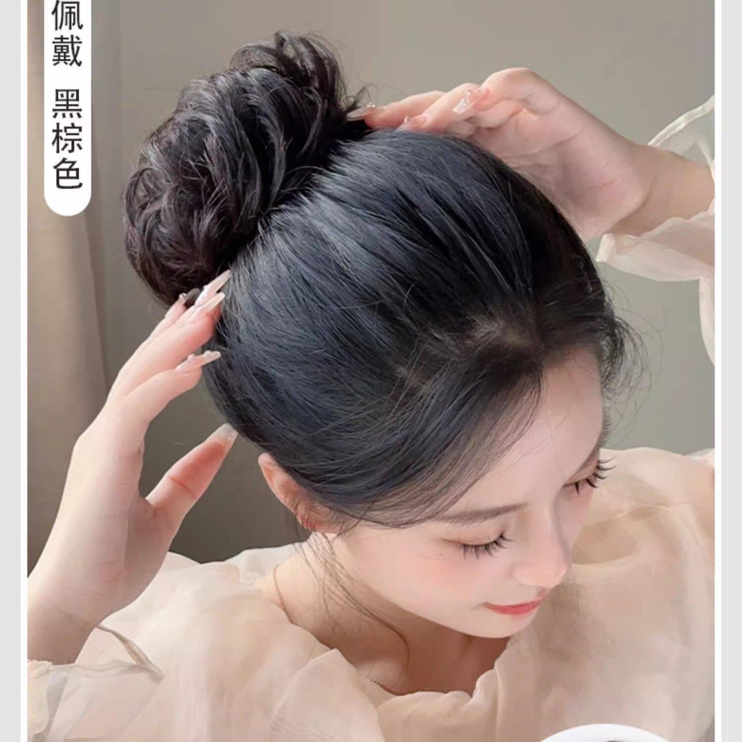 假发卷发圈全真发丸子头发饰盘发后脑勺发包蓬松懒人花苞头新娘