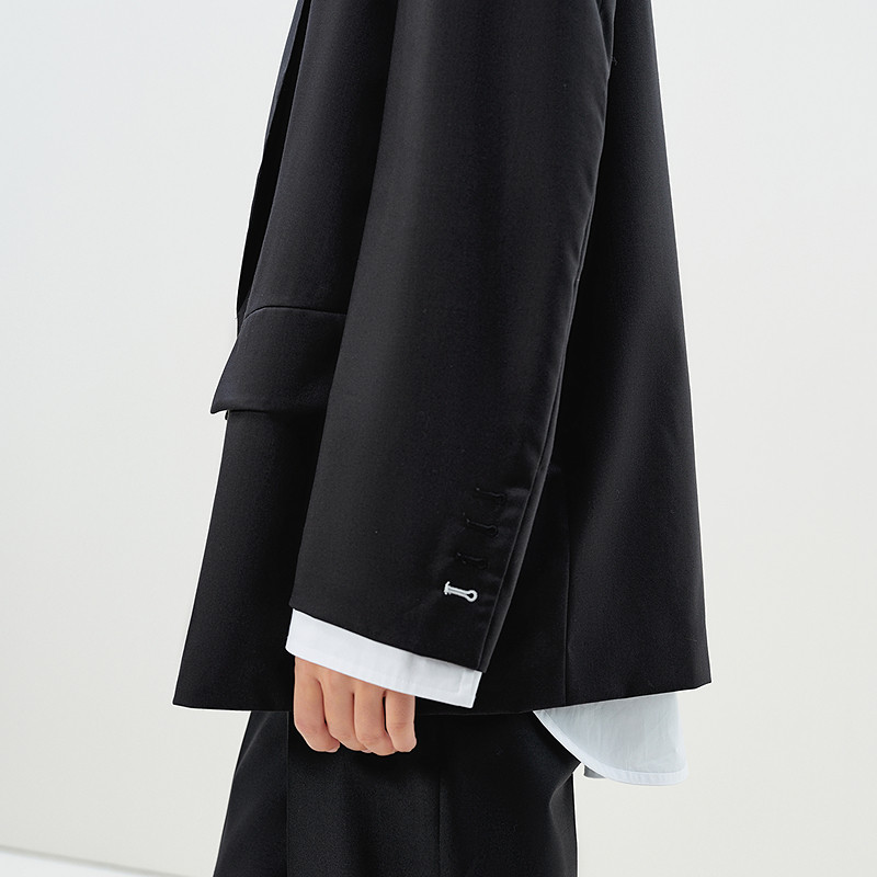 therumah无领西装外套 进口双层初剪羊毛袖口撞色外缝线休闲西装