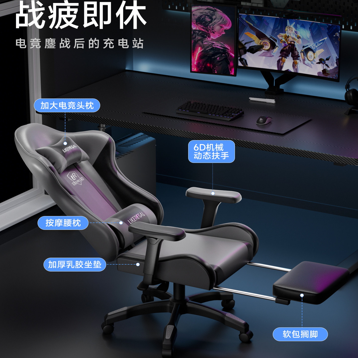 电竞椅子电脑椅家用舒适久坐宿舍电竞桌人体工学椅打游戏座椅按摩