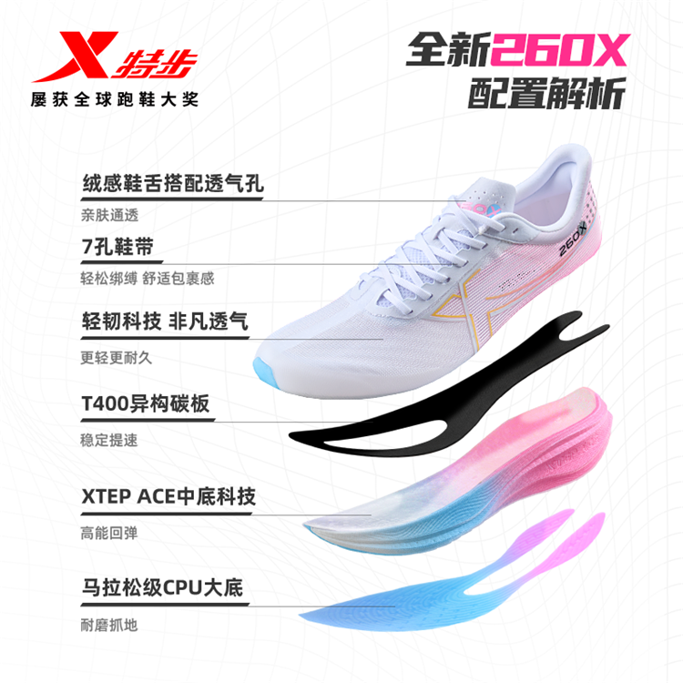 特步260X丨竞速碳板跑鞋男鞋专业马拉松运动鞋女鞋子跑步鞋