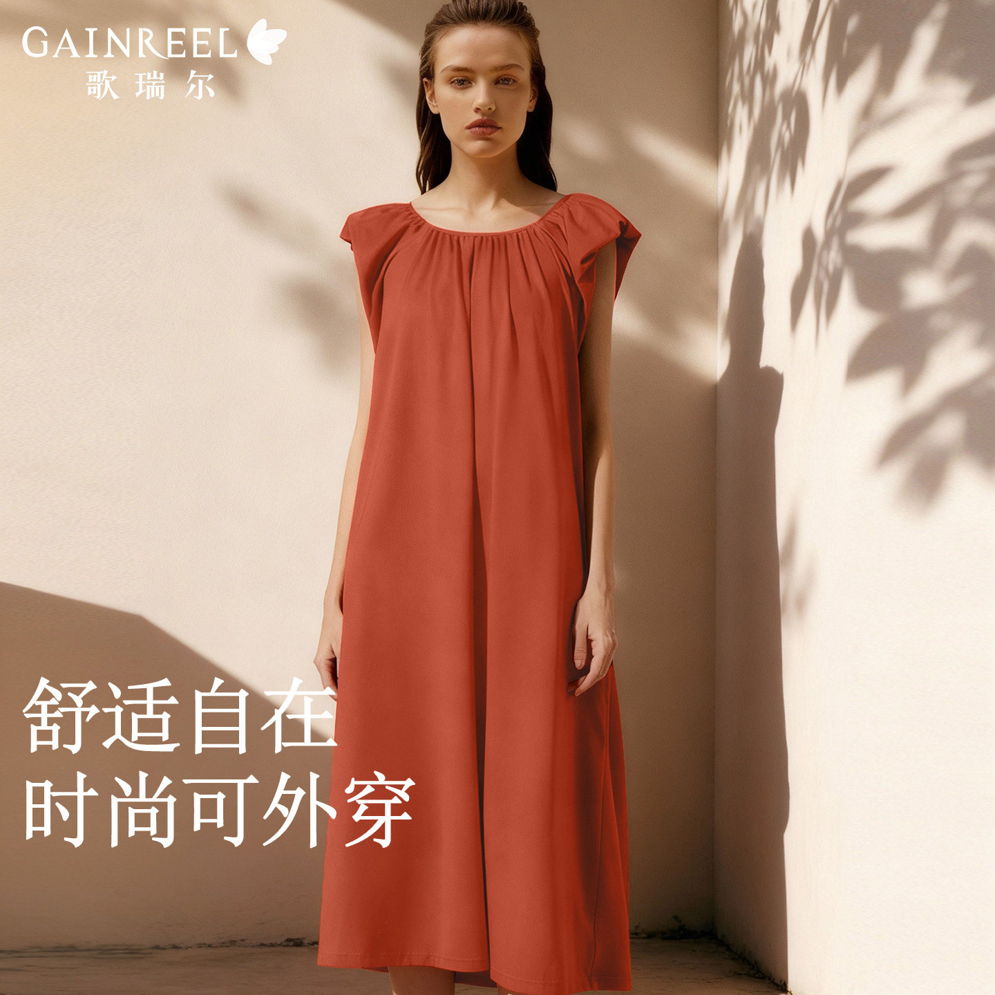歌瑞尔中长款连衣睡裙短袖美背睡衣女可外穿薄家居服2026年新款