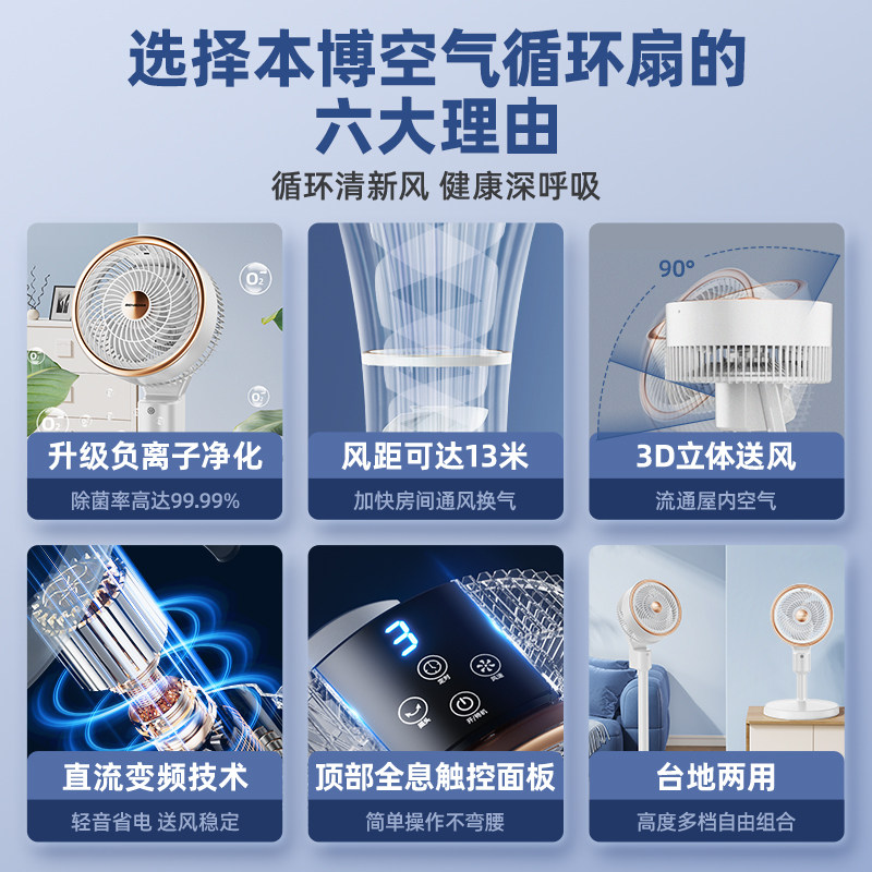 本博空气循环扇2026新款家用电风扇大风力轻音落地扇卧室摇头风扇