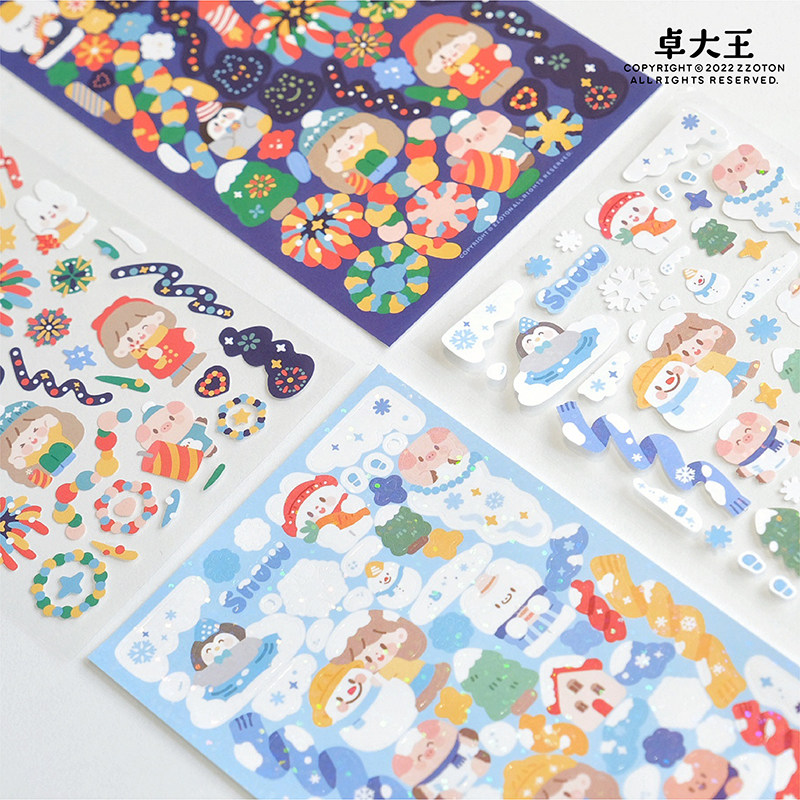 N酱 卓大王 阿卓烟花雪花装饰贴纸字母闪膜咕卡可爱手帐日记合集