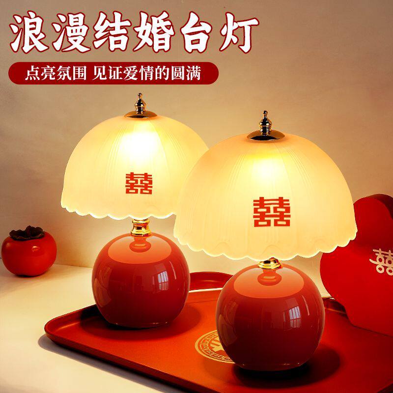 结婚台灯婚房床头灯新娘陪嫁灯送新人卧室长明灯新婚礼物红色喜灯